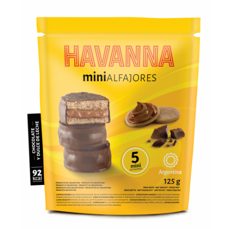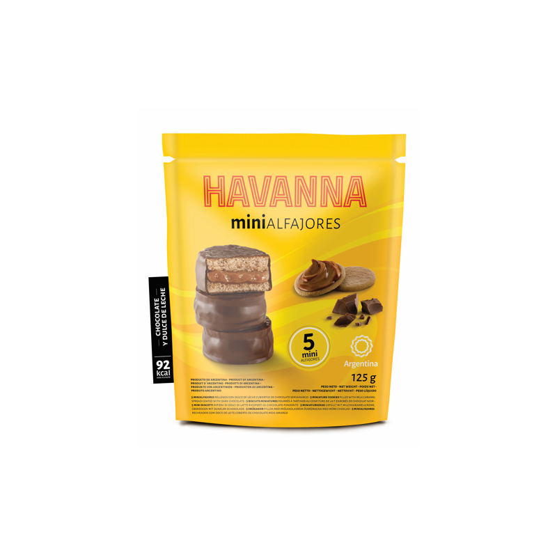 Die beliebtesten Alfajores der Marke Havanna, in einer kleineren Version, 25g pro Stück statt die üblichen 55g.