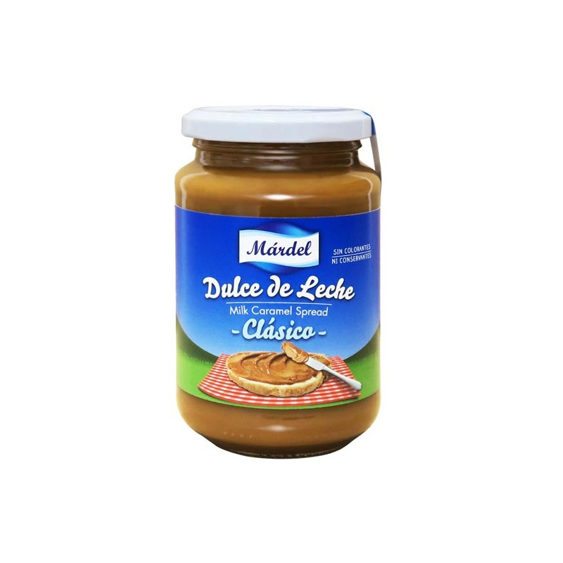 Die Milchkaramellkreme Mardel Clásico ist eine gute Milchkaramellkreme mit eher dunkler Farbe. Sie beinhaltet keine Vanille, im Gegenteil von den meisten Milchkaramellkremen. Passt perfekt zu Desserts oder am Frühstück als Aufstrich auf Brot.