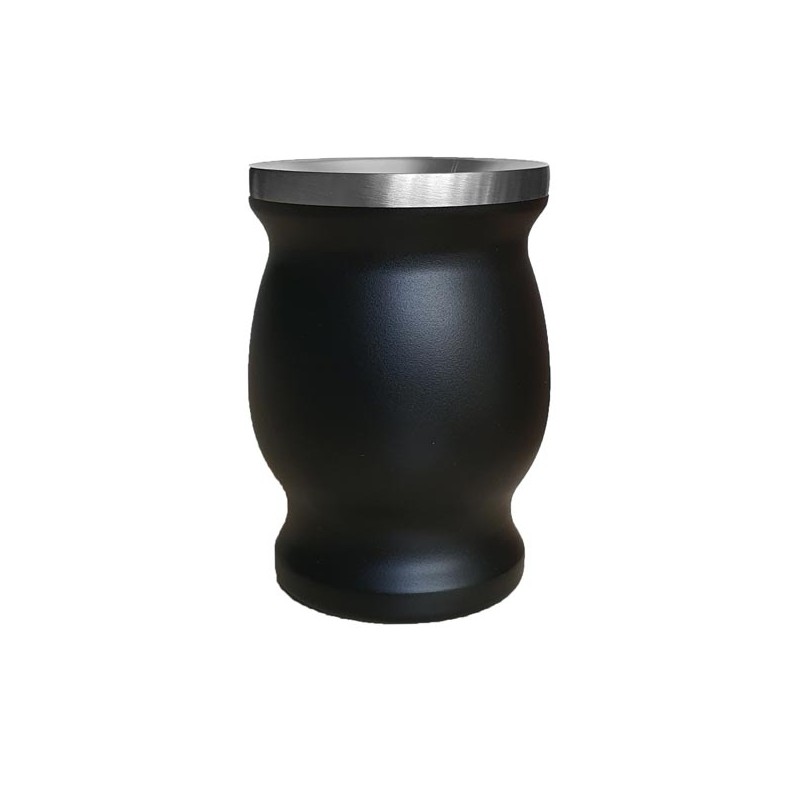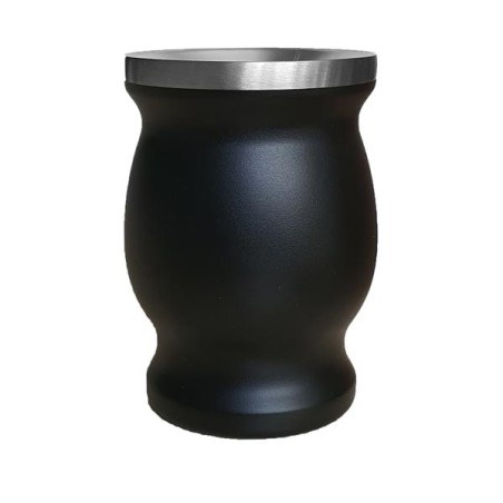 Mate aus Edelstahl mit einfarbig schwarzer Lackierung.