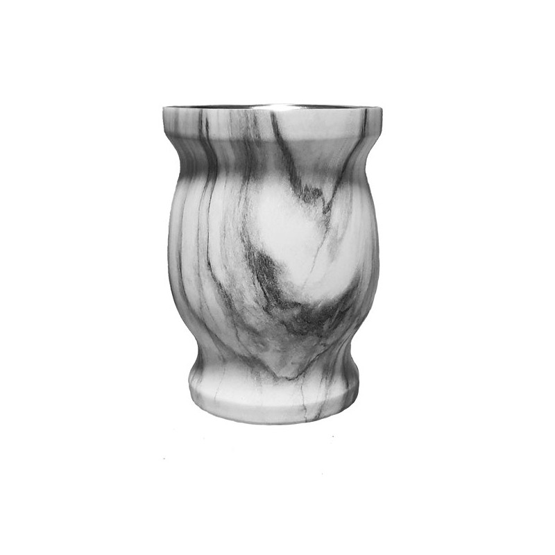 Maté en acier inoxydable avec décoration de marbre blanc.